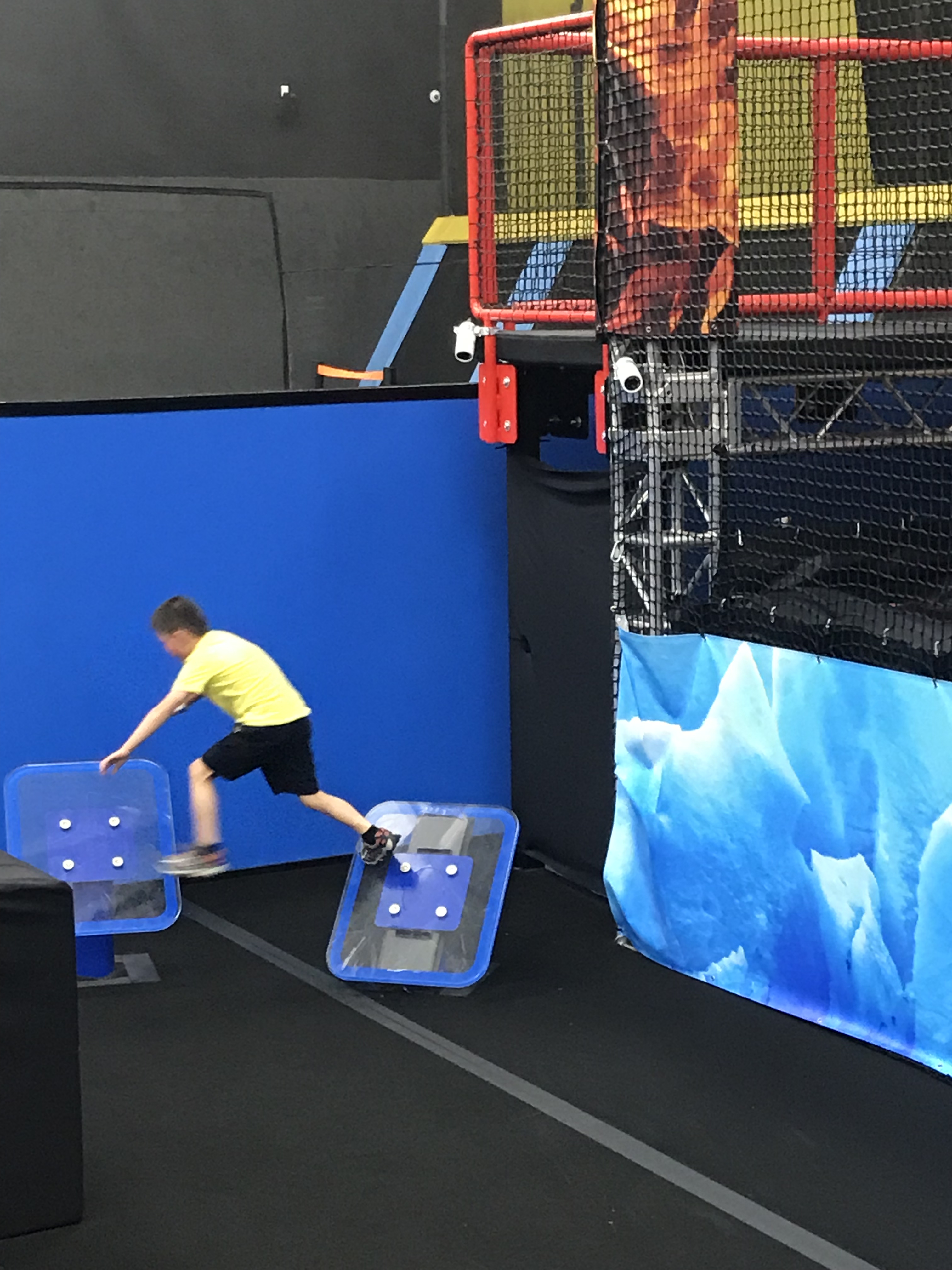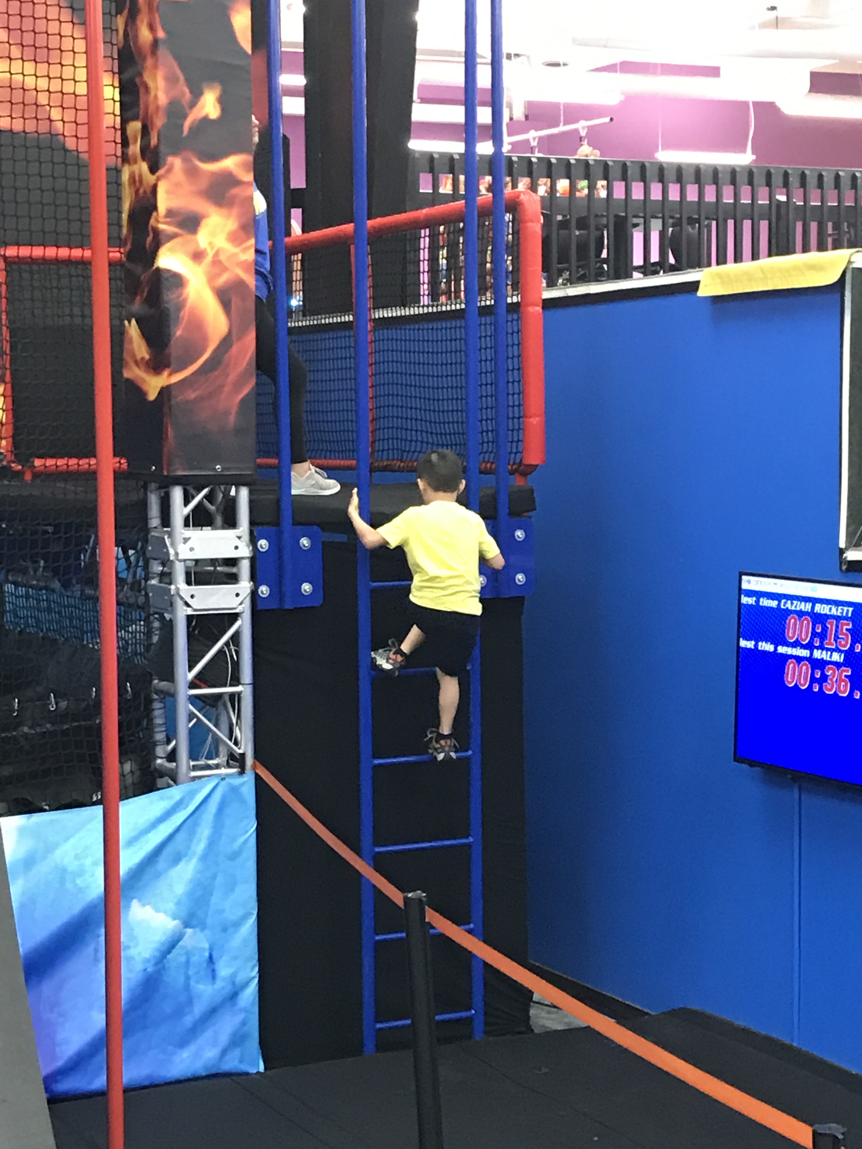 A kid from Indiana we met at the pool told us the day before about a trampoline adventure park in nearby Pigeon Forge that had climbing walls and an American Ninja Warrior-style obstacle course.