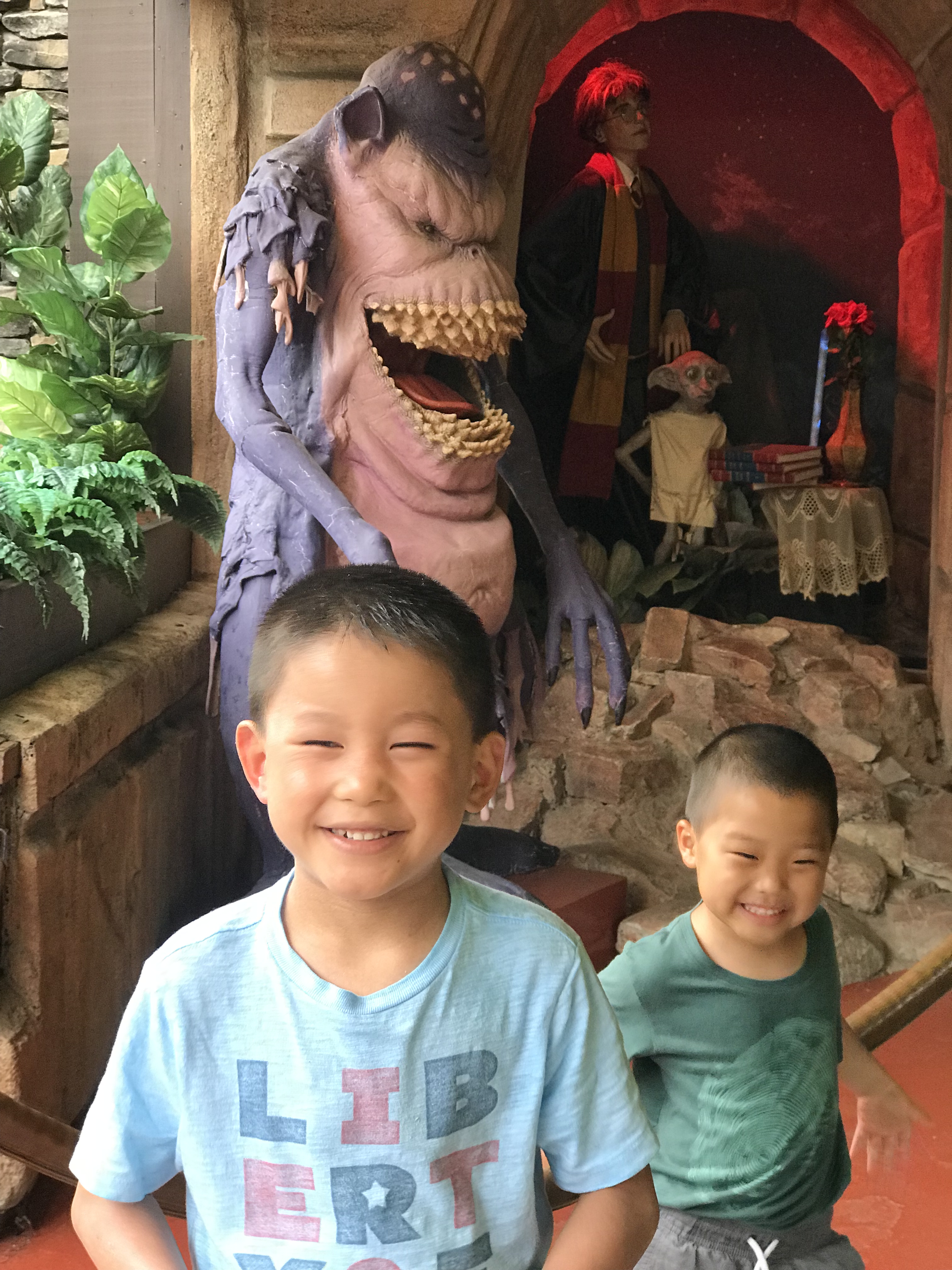 We then threw on our rain gear in the car and headed to Arcadia to use our remaining digital game tokens. A big disappointment for the boys was that the Ghostbusters game remained inoperable. They had to make do with Mario Cart, Space Invaders, a Snowboarding game, a modern version of frogger where a chick and mallard try to cross the street.