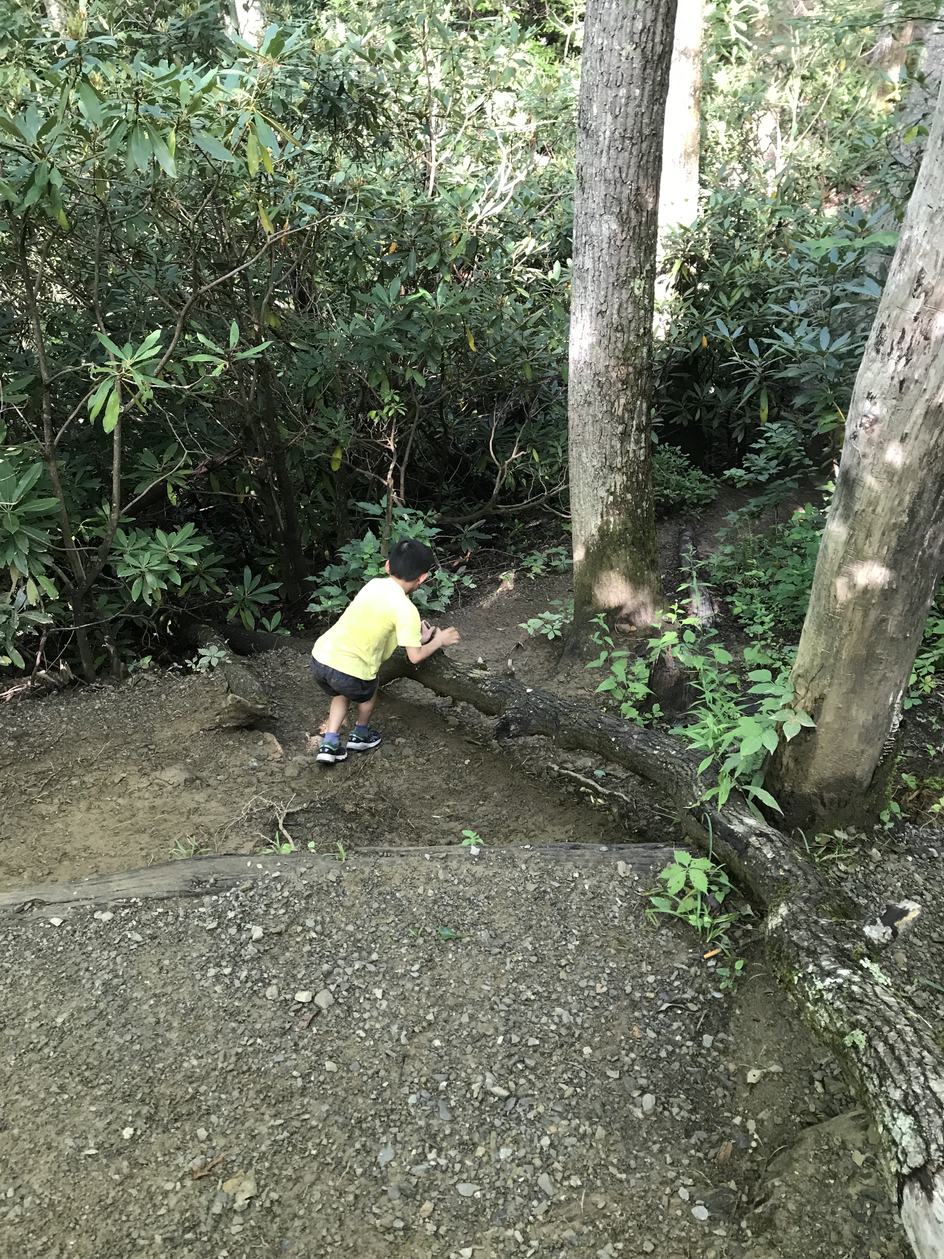 We had a nice walk up the mountain. They stopped to play in the mountain streams cutting across the path. They climbed on the some of the bigger rock formations just off the trail.