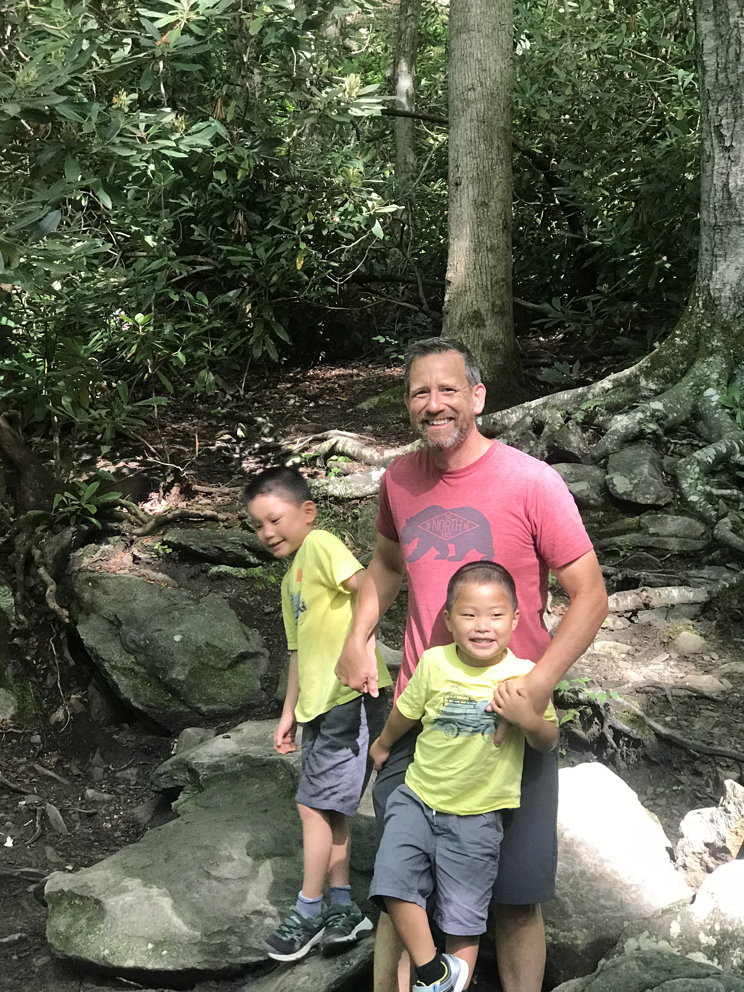 Finally, we completed a hike. It wasn’t long and it wasn’t difficult, but we finished. We arrived at the Laurel Falls trailhead in Great Smoky National Park just after 9 to avoid the heat and humidity. The parking lots were already full so we had to park on the side of the road.