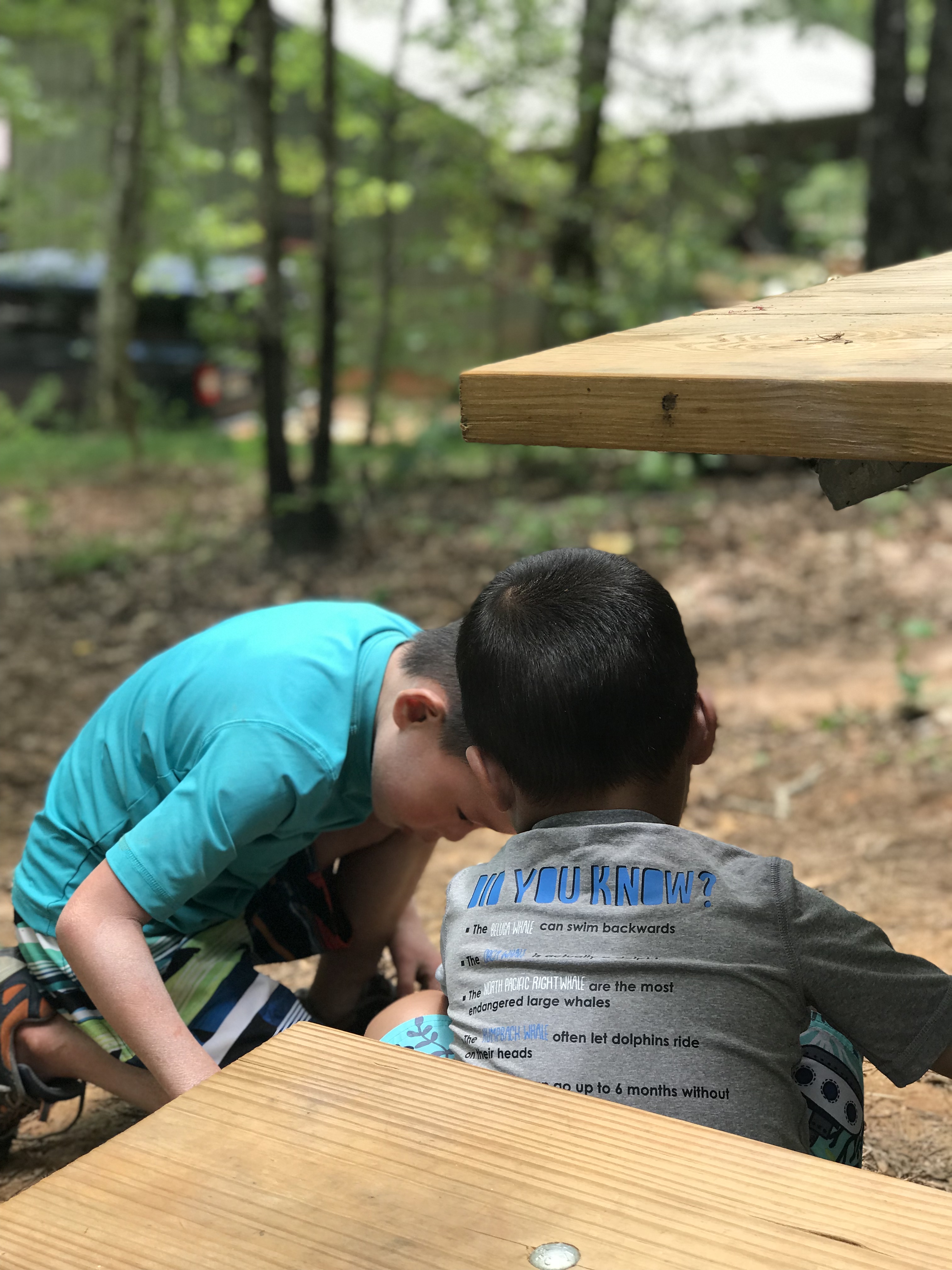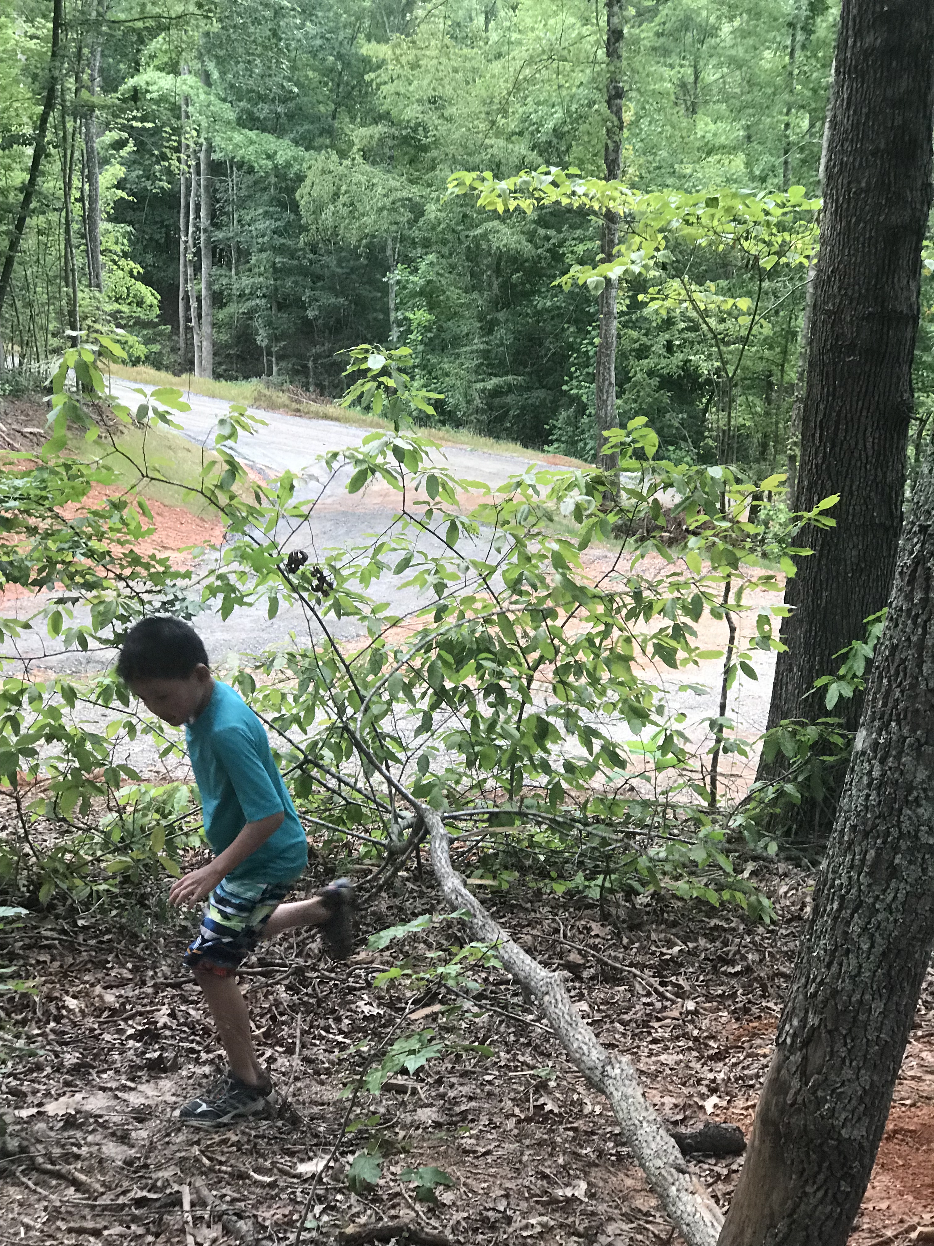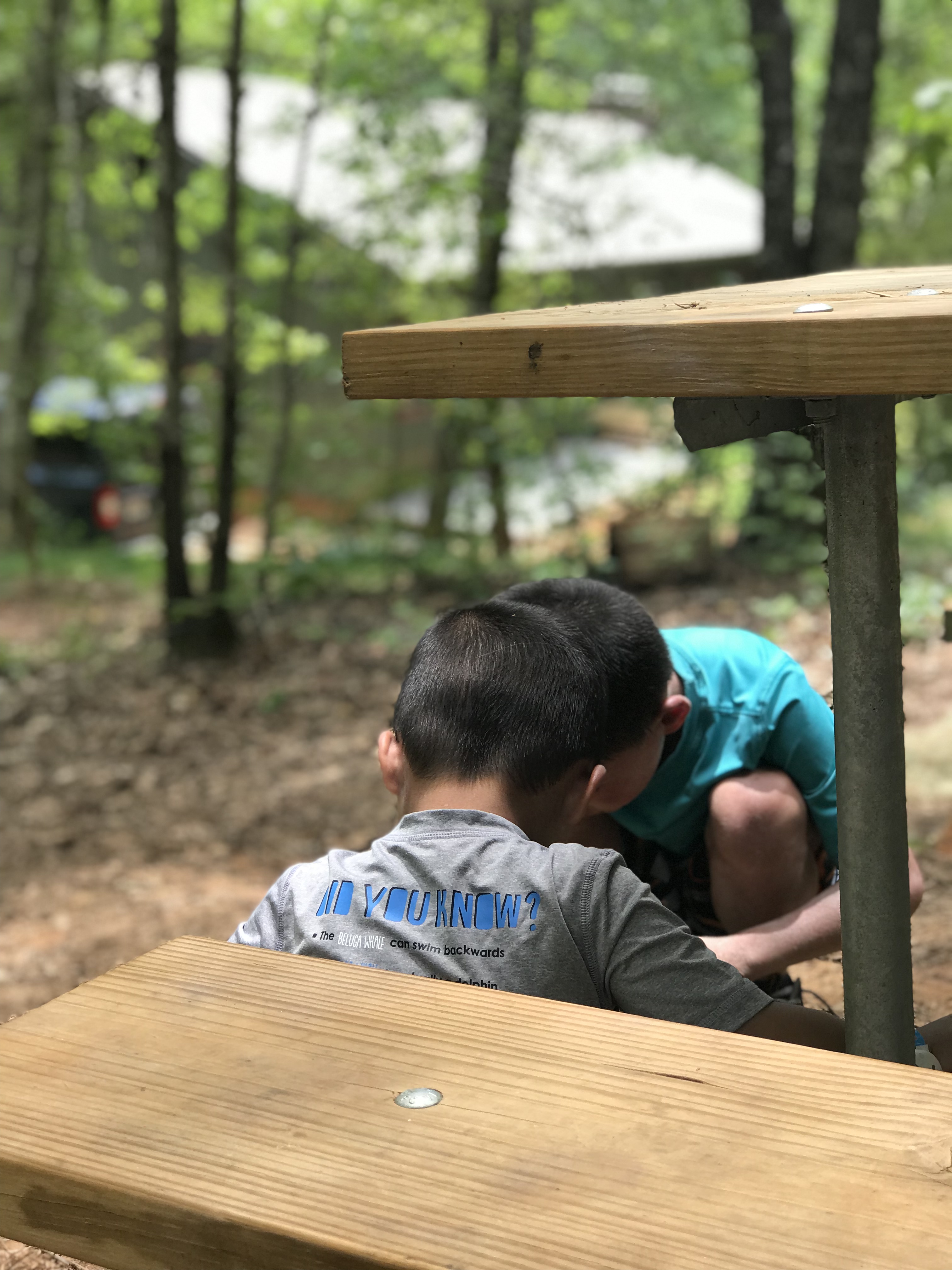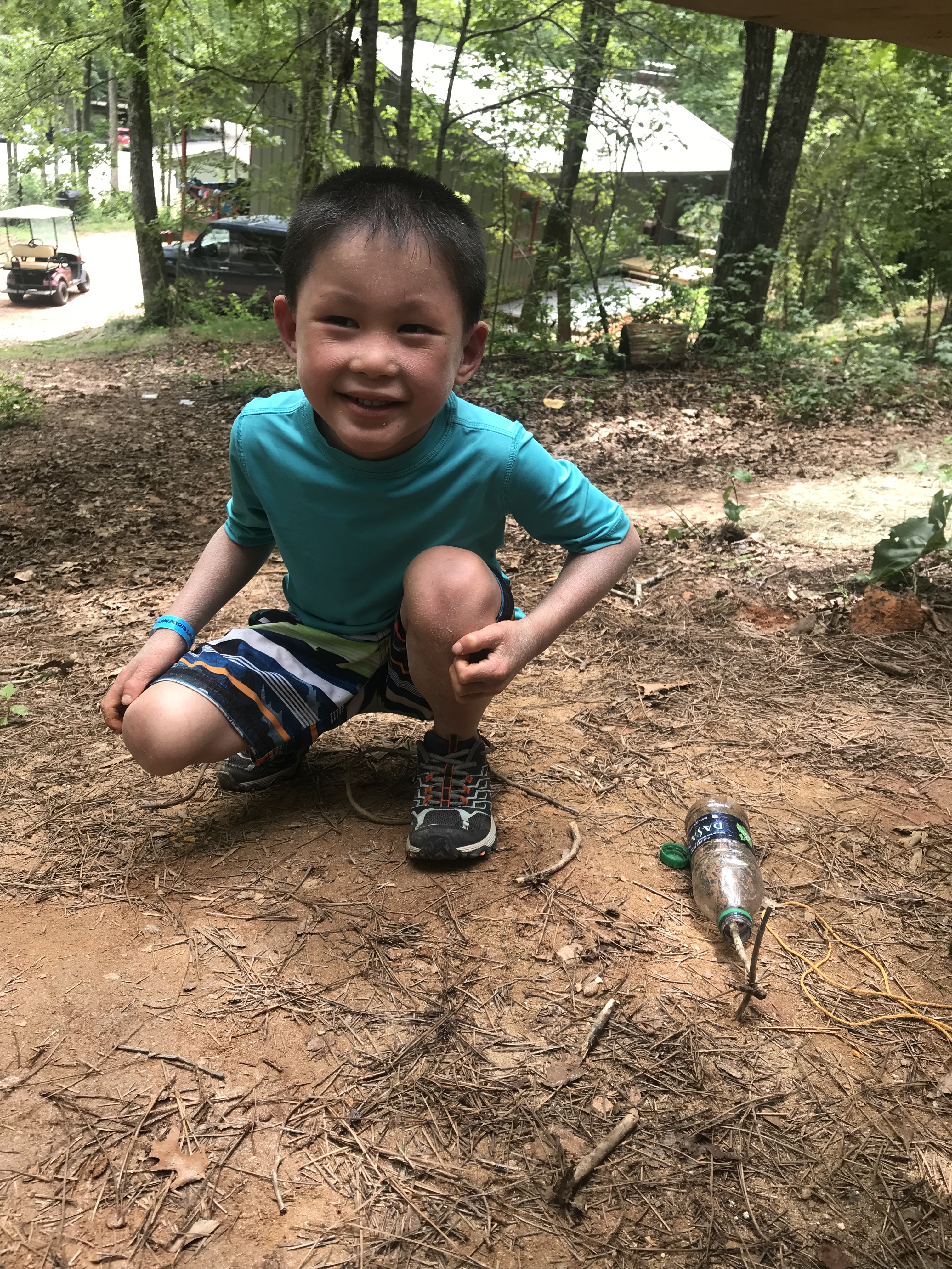 The emergence of the boys’ independence brings its own new rewards. Today, it brought Will’s needlessly elaborate plan to catch some giant North Carolina ants for the ant farm his Uncle Chuck gave him. It started with him trying, ultimately ineffectually, to get the ants ravaging a piece of breakfast sausage Lucas dropped under the picnic table into a Dasani water bottle. After that failure, he recruited Lucas to help him use a bottle cap to scoop the ants up and into the bottle. That plan failed too when they discovered that giant North Carolina ants are fast and bite. Will then hit upon a plan reminiscent of Dr. Evil in terms of its needless and perplexing complexity. It involved building a multi-level stick bridge laced with grape jelly that led into the Dasani bottle, which now lay on the ground near the picnic table. The bottle was also laced with grape jelly. And, as an extra enticement, Doritos (original flavor). I am not sure that it caught it ant. Will thinks it caught two. But it definitely caught a large fly.