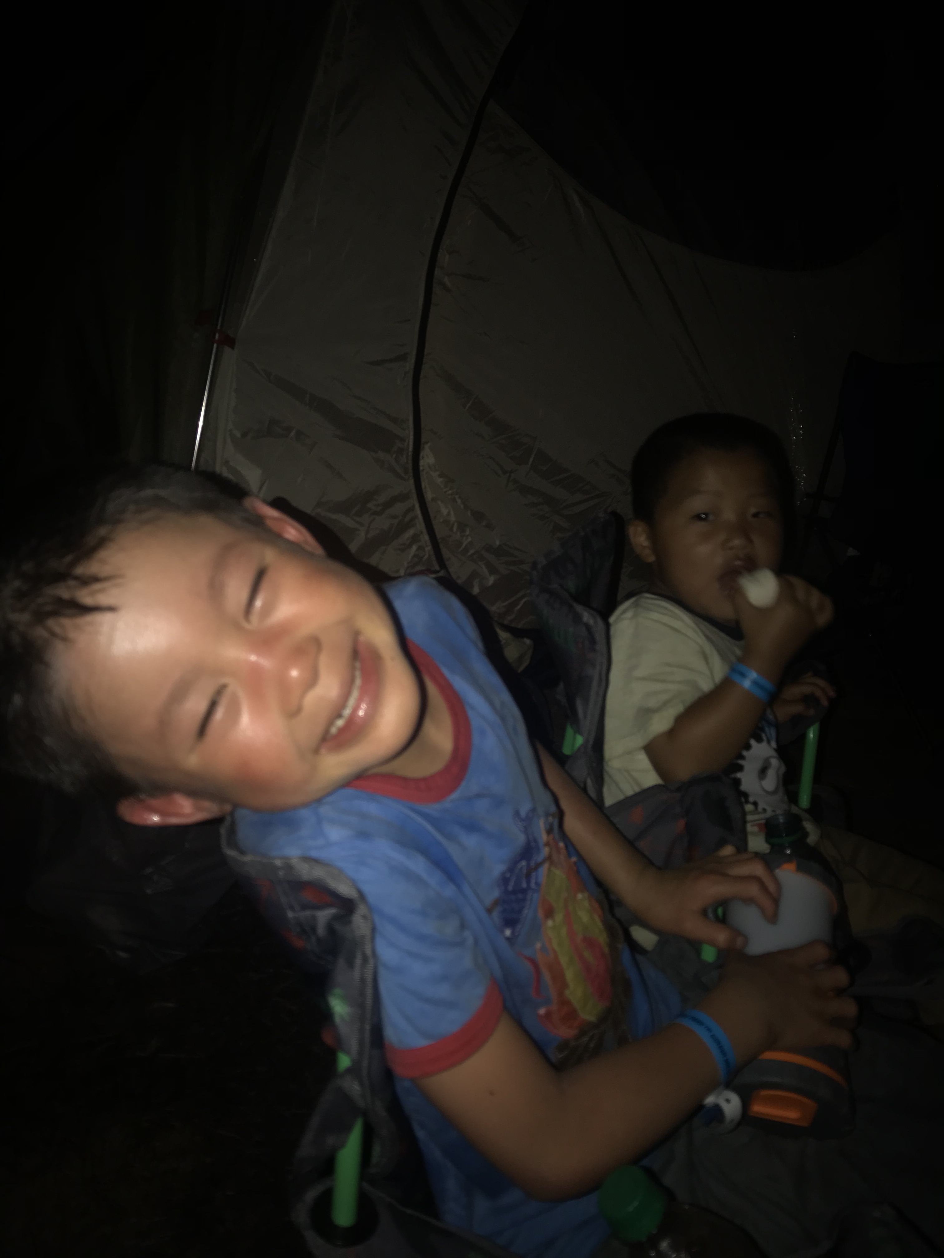The night concluded with the boys telling more scary camping stories. Lucas is now an eager and energetic storyteller. It is funny how we are all carried along on the wave of Will’s enthusiasm for the things he loves. When Lucas came to us he was afraid of anything physical. He looked petrified when given even a couple small pushes on a swing. Being around Will has made him fearless. It has also made him a fervent contributor to our Will-induced family tradition of oral storytelling. Only acceptable genres. Thriller and horror.