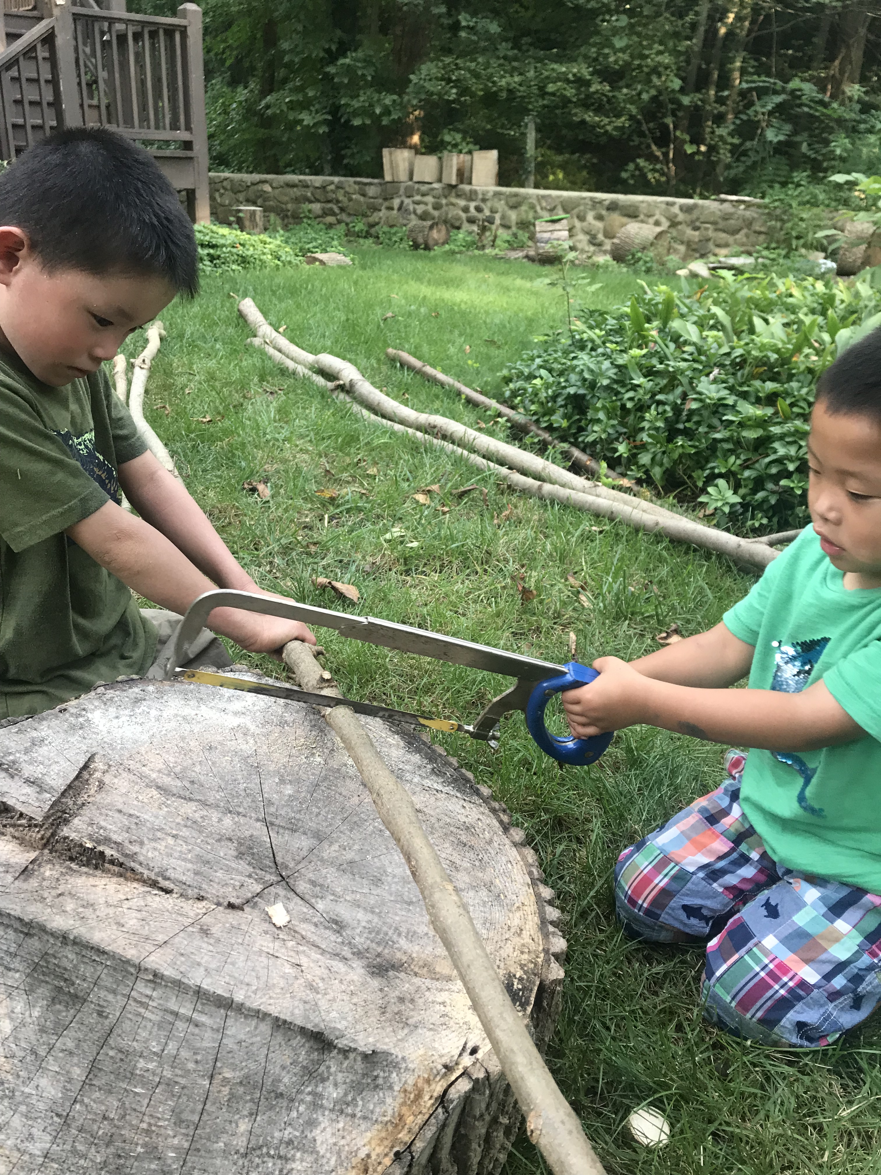 To do that, I let them engage more fully with physical world and things. From an early age, I have let them run trails where I knew there was a good chance that they would trip and get a good scrape or cut. I let them explore the woods. I let run across and leap between fallen trees at the park. I let them climb and jump off of boulders. I let them use my tools.