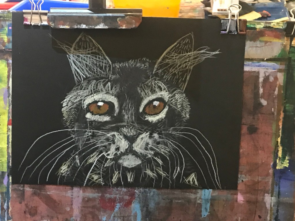 Will finally finished the sketching the cat he has been working on at his amazing after-school art class. Here is the cat sketch in its various stages. He continues to amaze me.