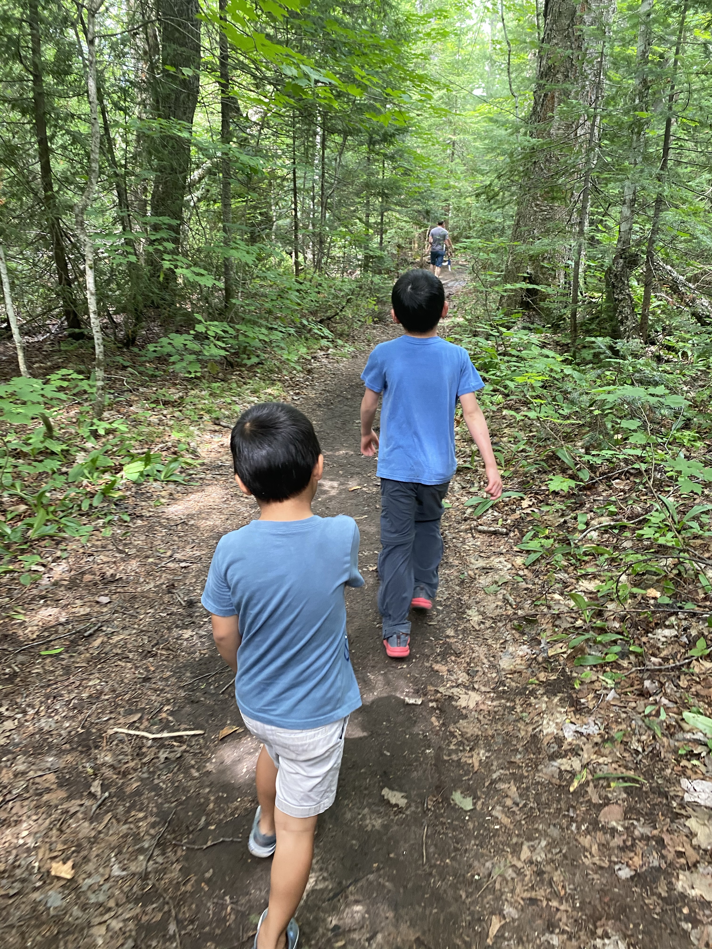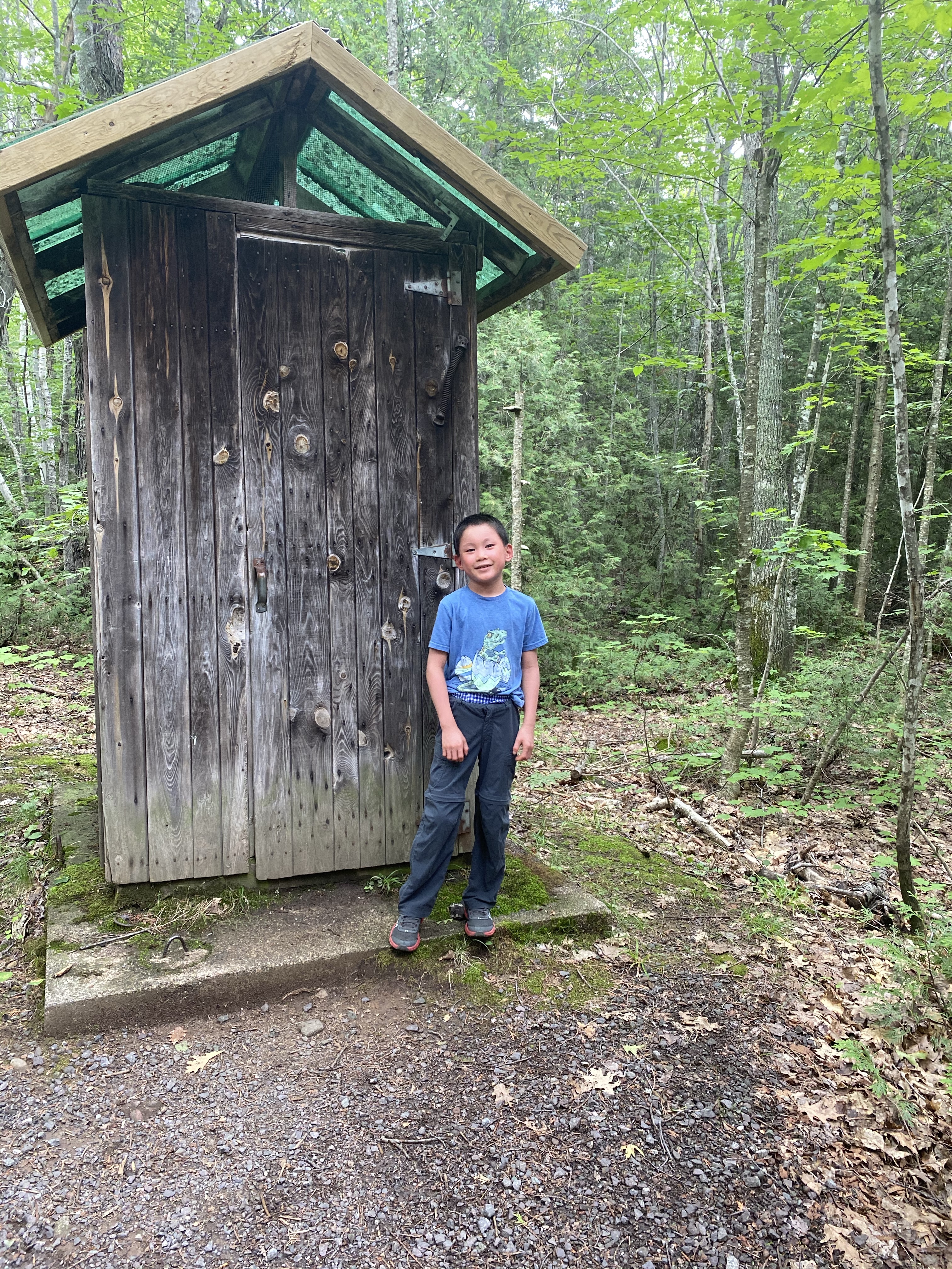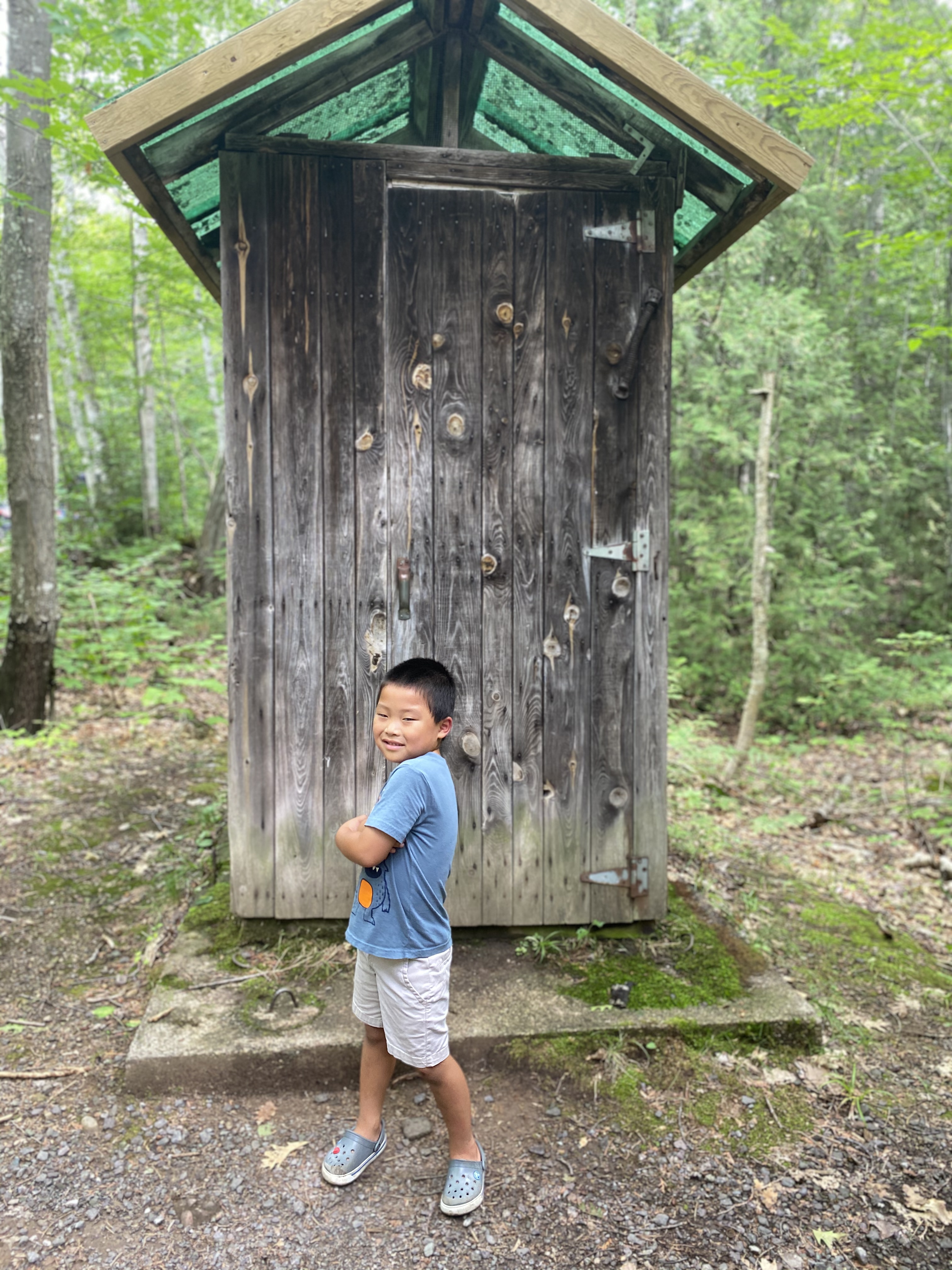 At first we headed to Manganese Falls. The trip to the falls ended up being a bit of a wild goose chase, which ultimately lead to side trips to an old pine forest, Manganese Lake, and Will’s first outhouse experience. Will, with his “sensitive nose,” is definitely not a fan of the outhouse concept.