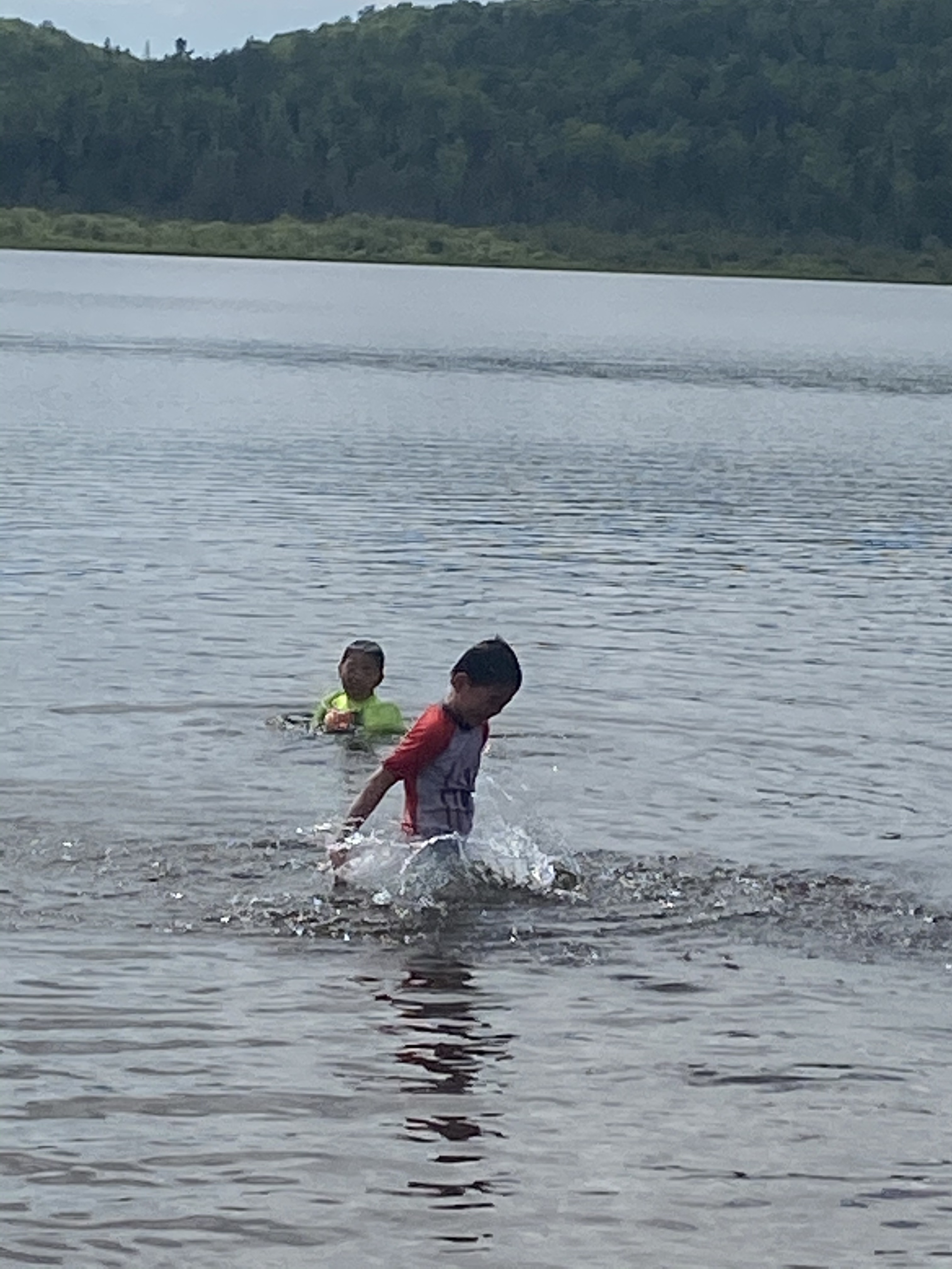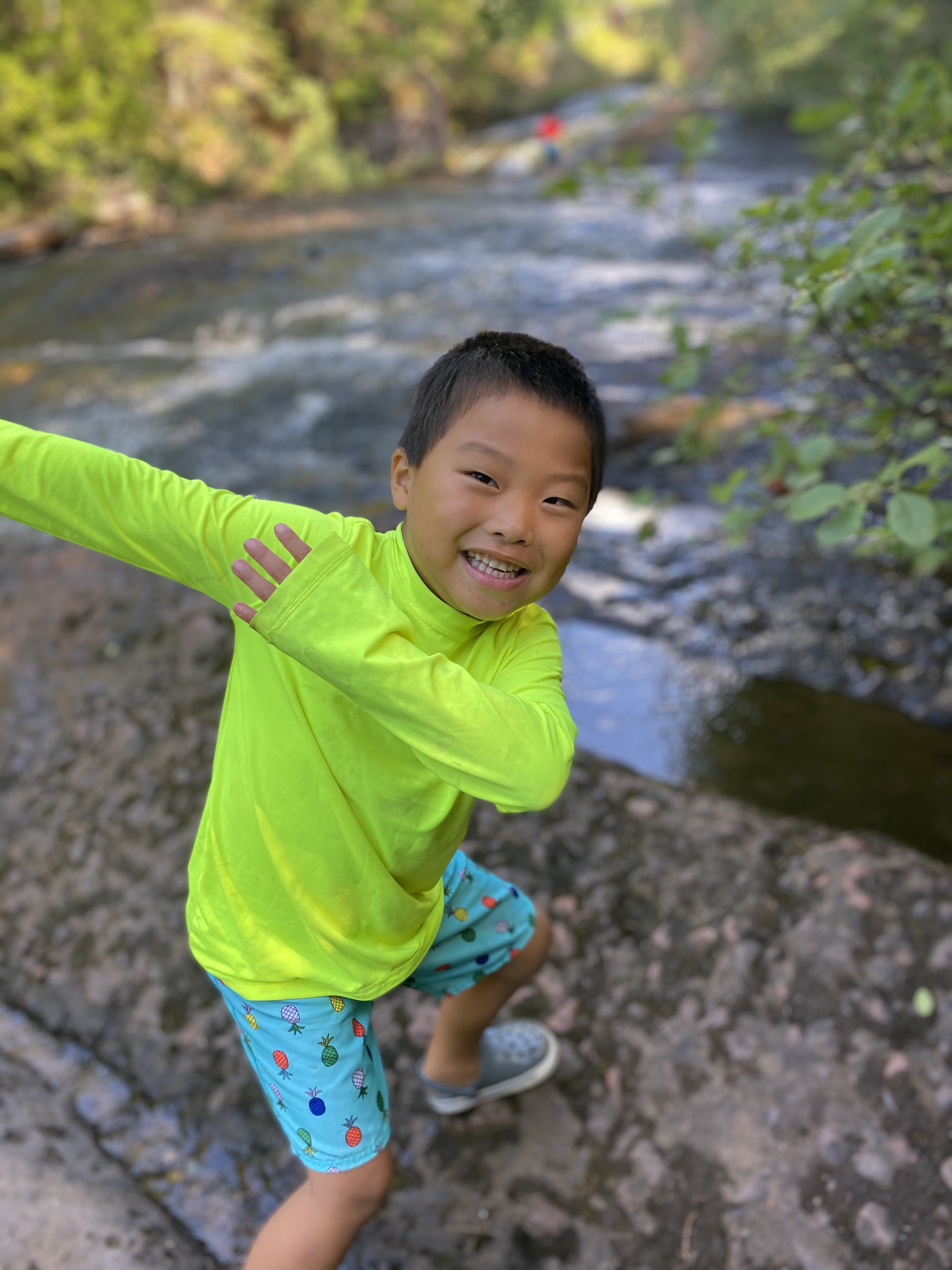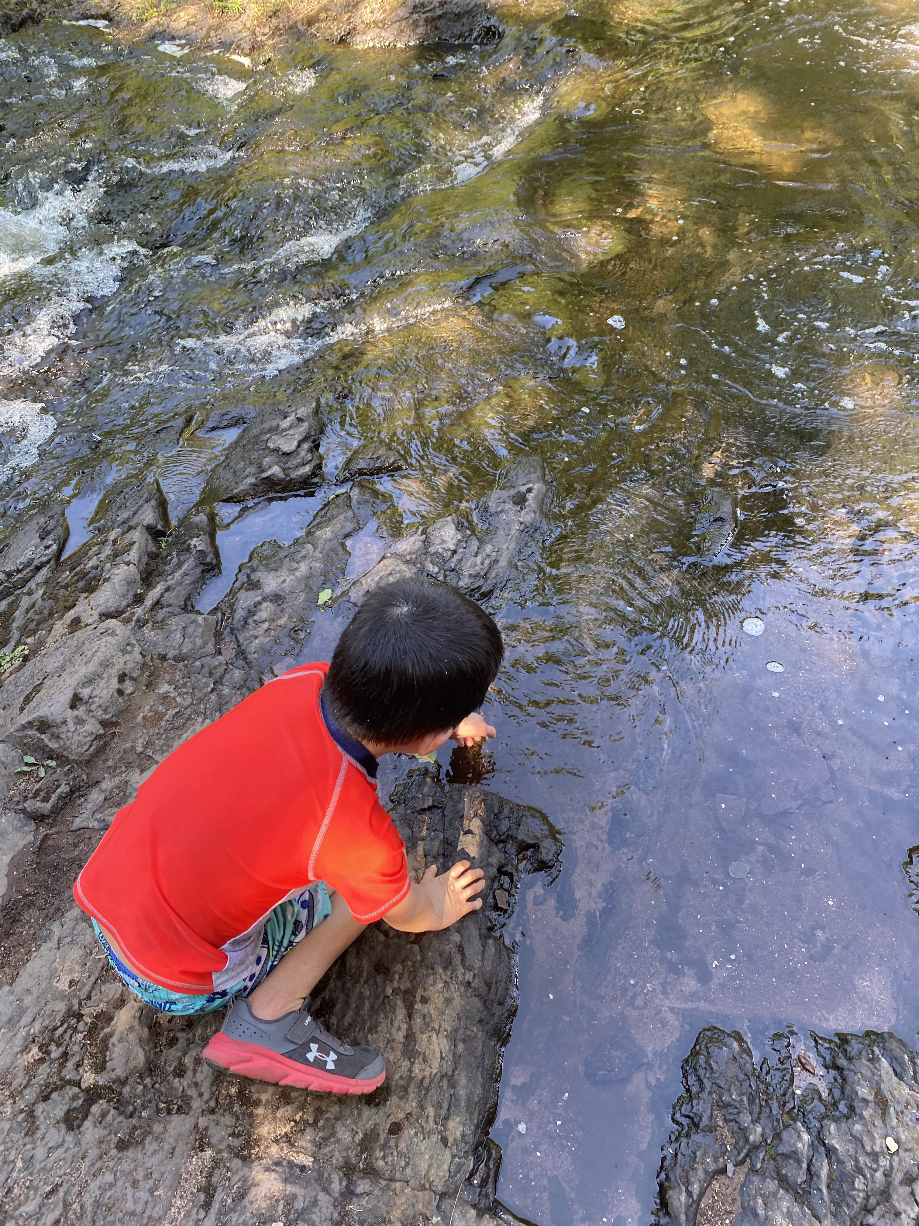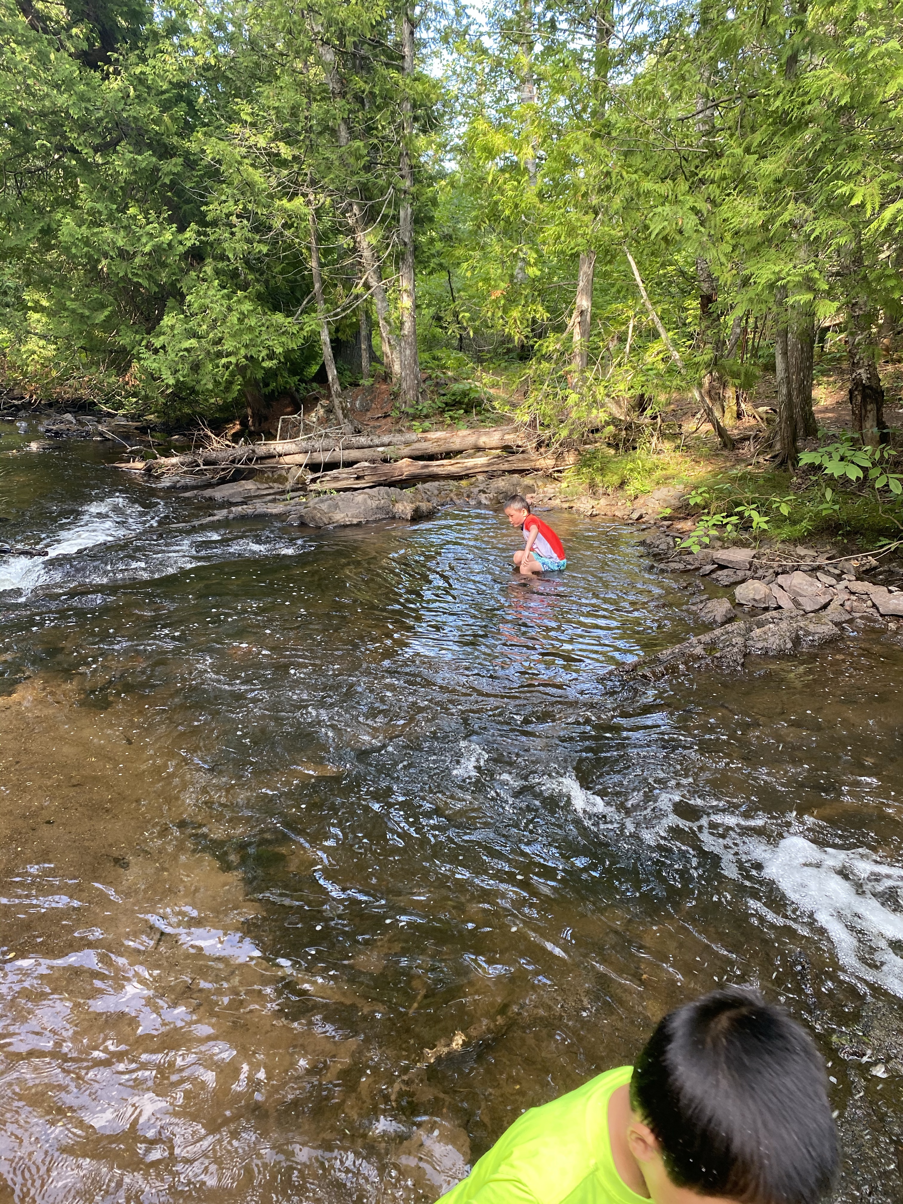 The Manganese Falls trails was too steep and precarious for a five year old and Jenny’s distinctly non-adventurous sandals so we drove around looking for a more accessible falls for the boys. On the way back to the campground, we found a wonderful little falls where they could explore, play, splash around, and slide down the rapids. Perfect for us.