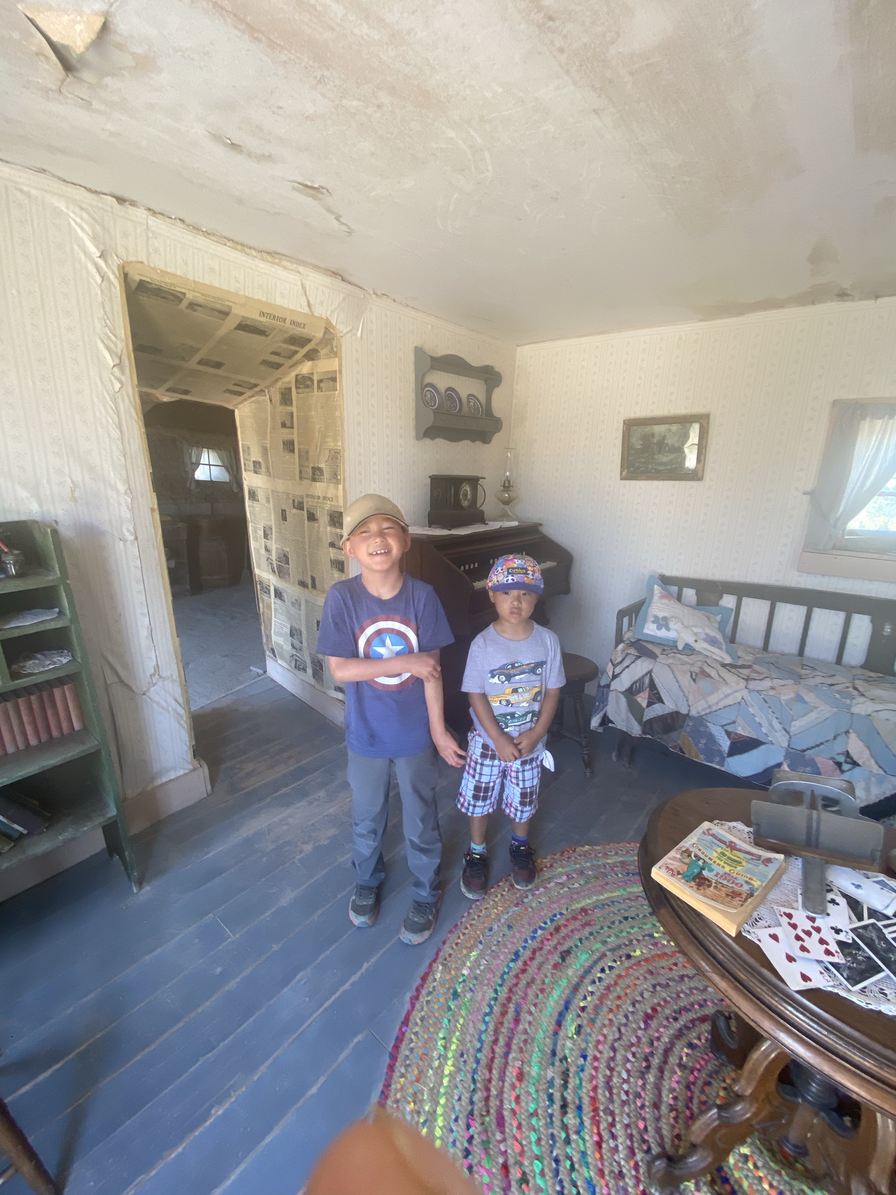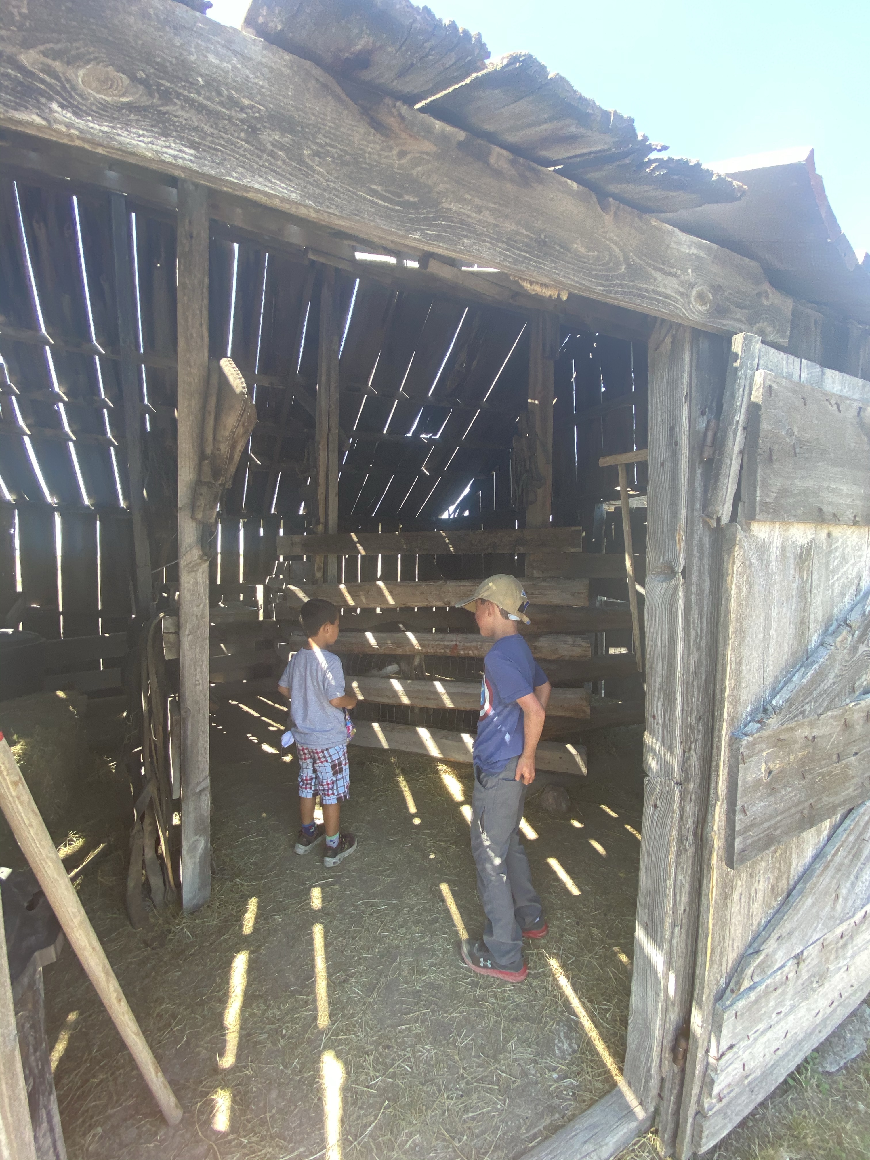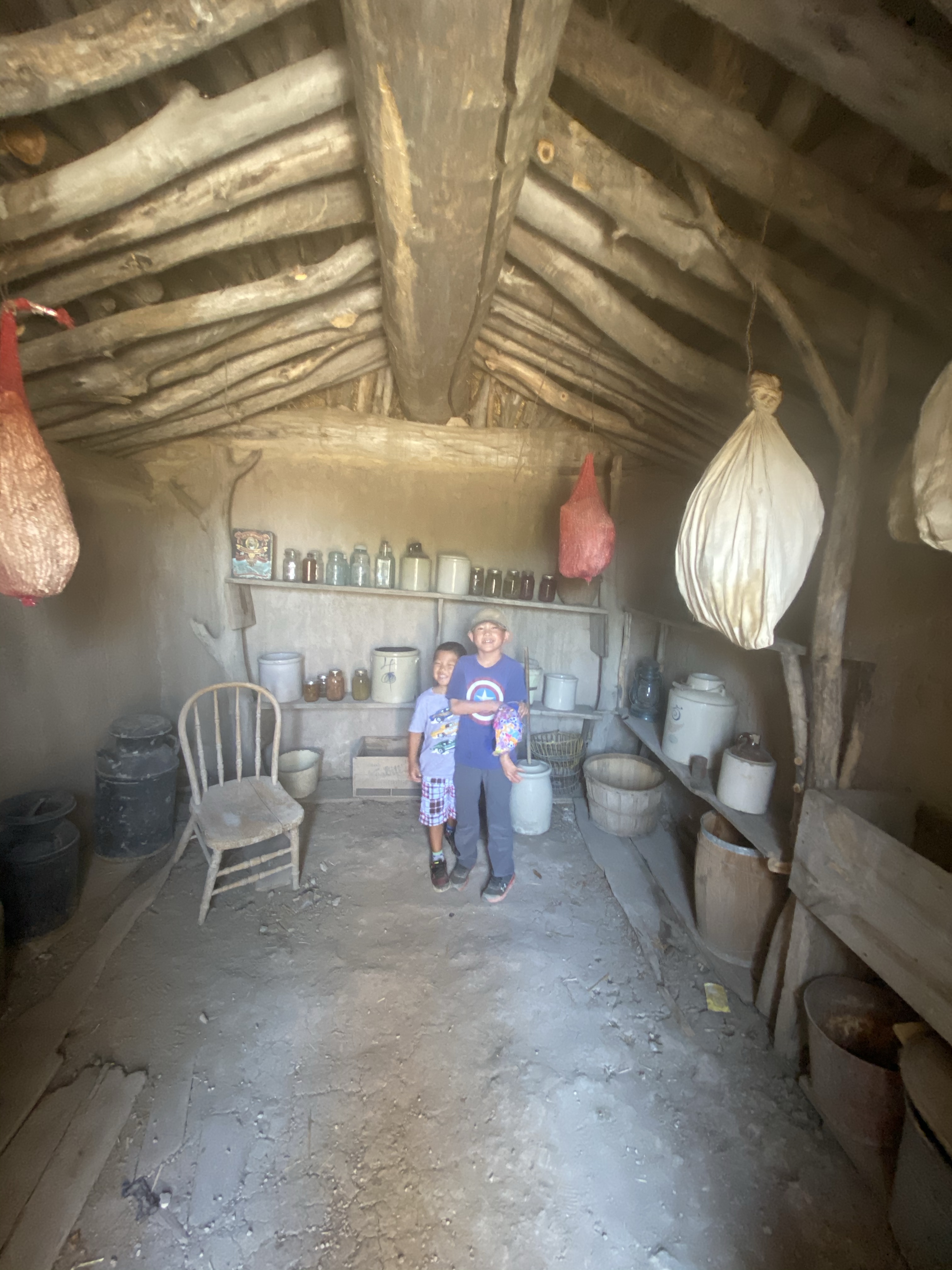 Will, of course, immediately fixated on a kinda spooky doll on the kid bed when we got to the house. They were most intrigued by the root vegetable cellar built into the ground next to the house. I told them that their great-grandparents had a fruit and vegetables cellar. Will was glad that the homestead outhouse had collapsed, given his repulsion at the one in UP forest he had to use.