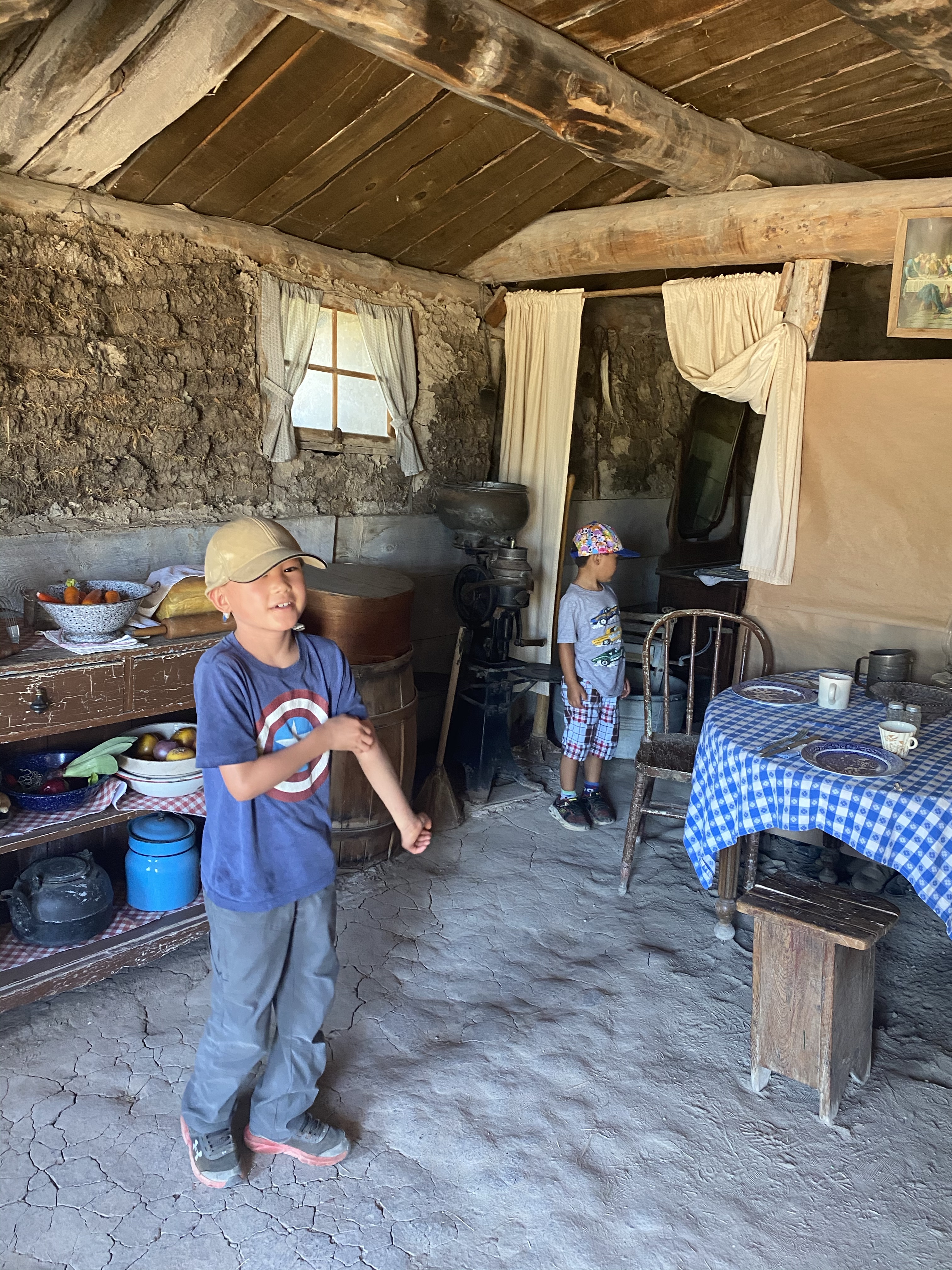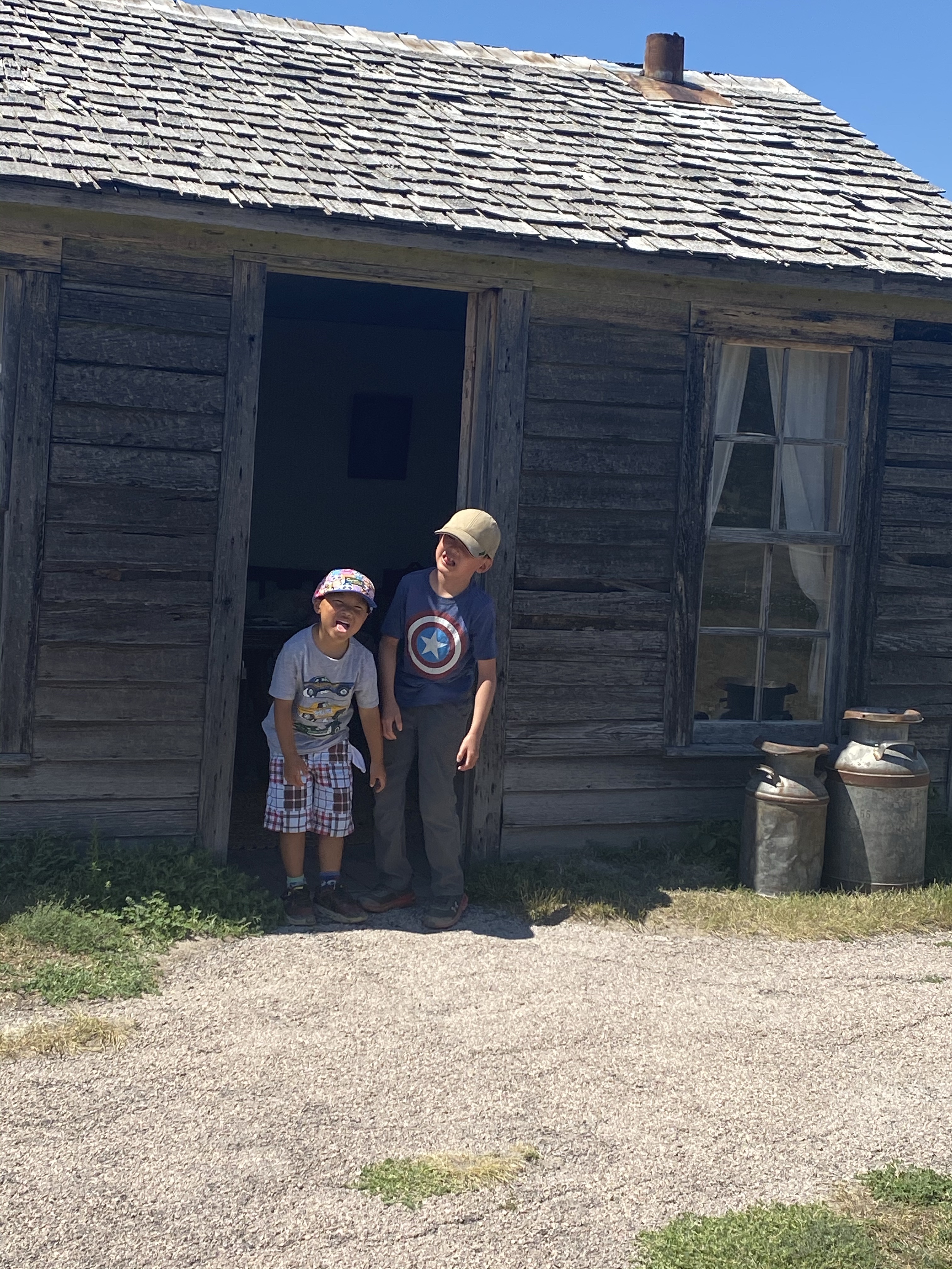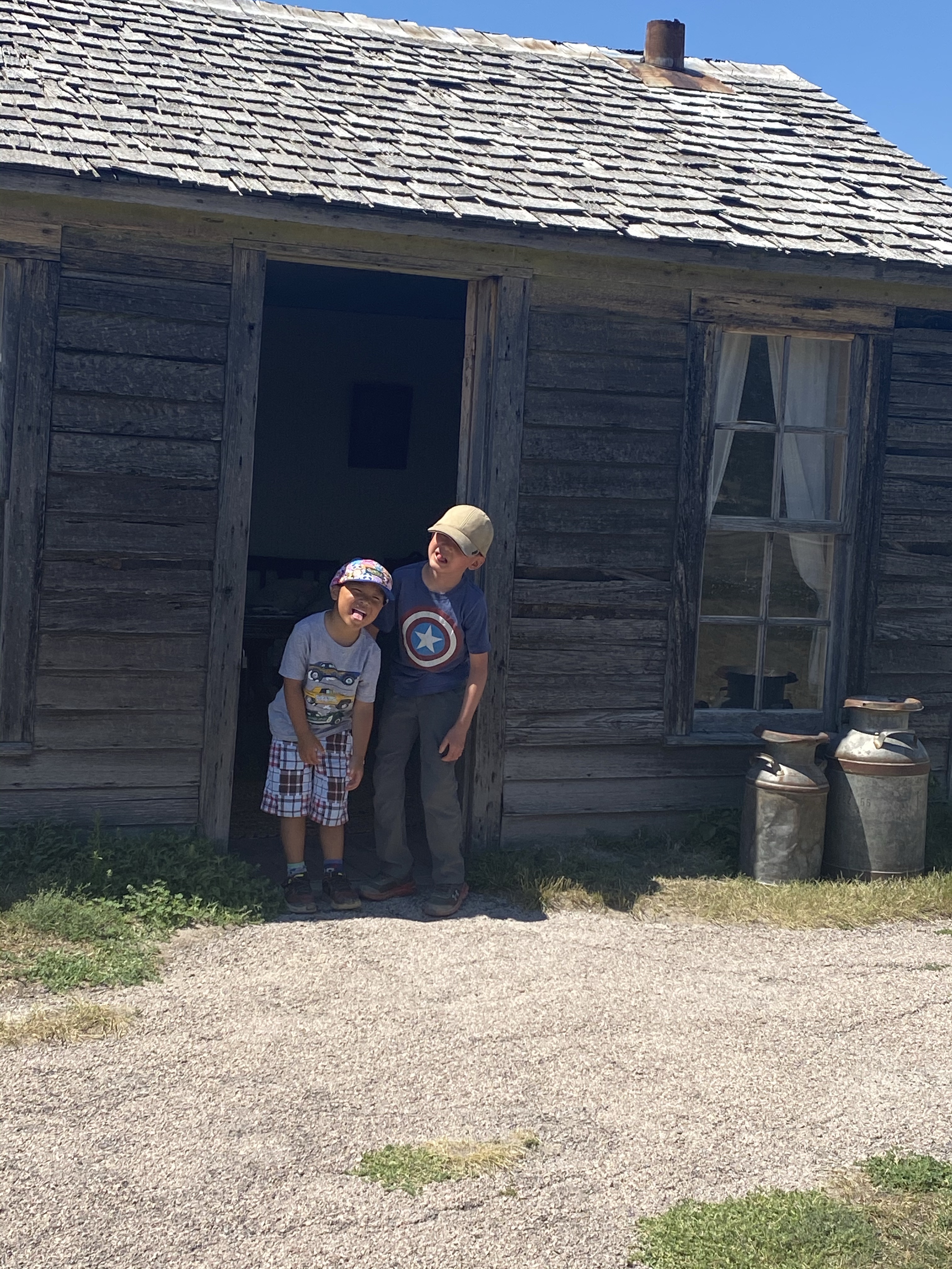 These pictures do look like you indeed are in some bad land. It looks so hot and barren but the boys are troopers and seem to be having fun. I liked the little cabin and a glimpse of life in the past. It’s only a few weeks since I saw Will and Lucas but they seem so much bigger! Can’t wait to see Yellowstone and more pictures.