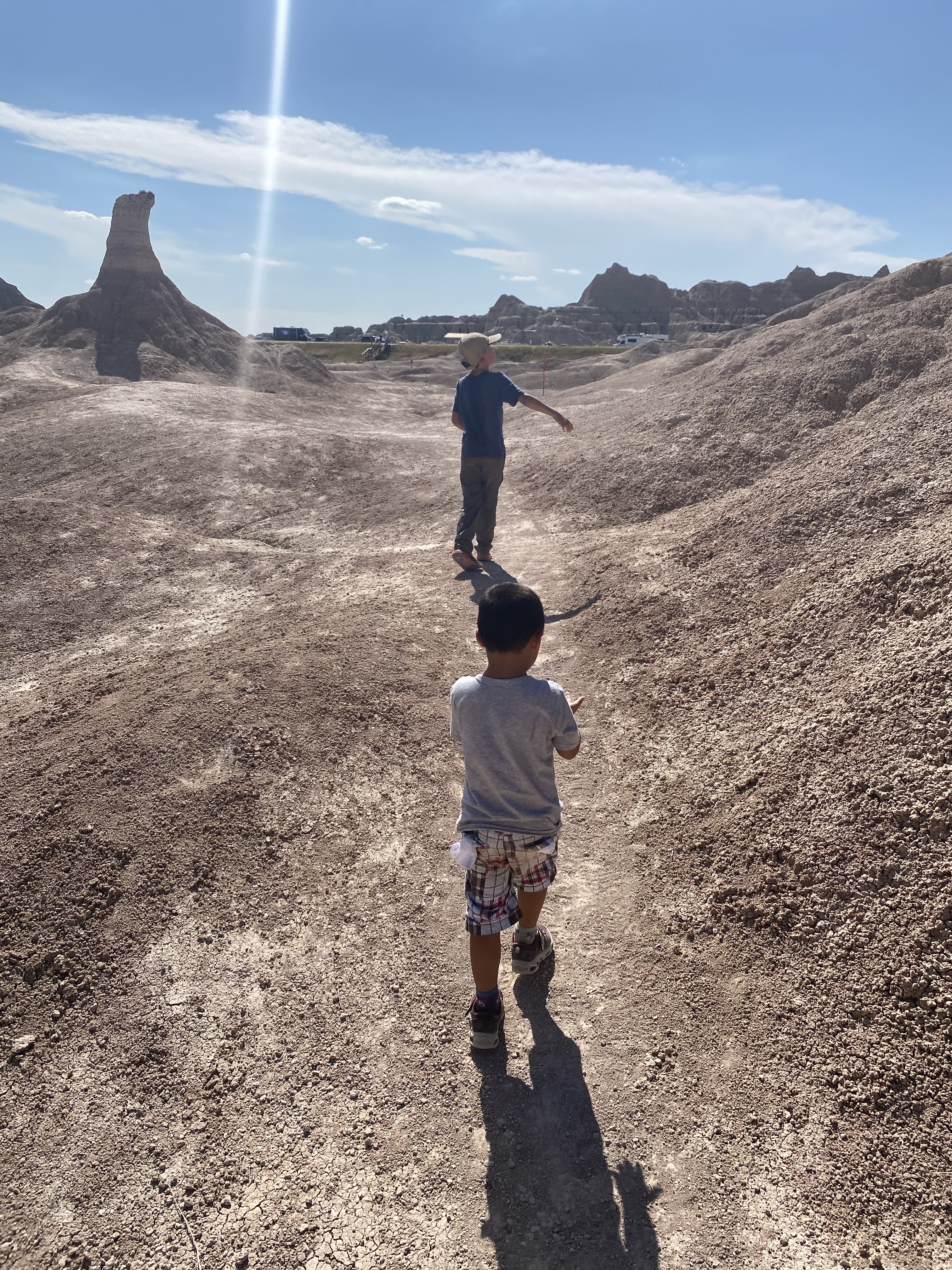 We spent the afternoon at Badlands exploring the incredible landscapes. During lunch in the RV, we watched a couple videos about the geology and history of the Badlands. Then, we did some light hiking across the barren landscapes.