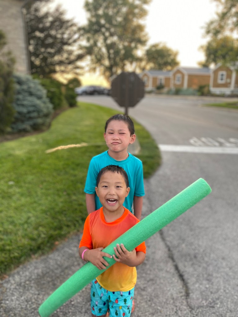 We had to leave the park a little early for an emergency Friday night board meeting at 6:30. I haven’t found any great solutions for Zoom meetings on the road trip. Much to my surprise, the pool has been the best of a bad choice set. So we jogged from the park to the camp store, where I grabbed them each an ice cream sandwich as penance for making us leave the park prematurely, and then they speed-changed into their swim suits so we could get to the pool before the meeting started.