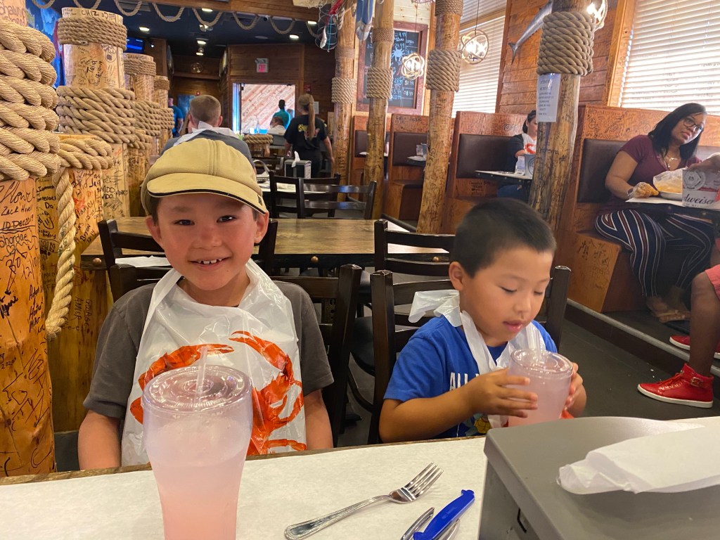 Eventually, the boys tired of playing in the summer heat. We debated in the car where to go to eat. Lucas wanted Chinese, but we had just been to a Japanese Steakhouse so I rejected that idea. Lucas proposed Mexican “because Mexican is far from China.”
