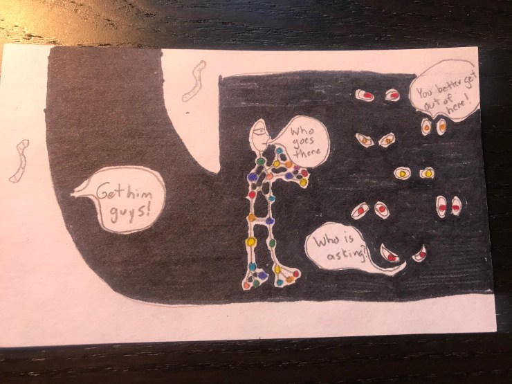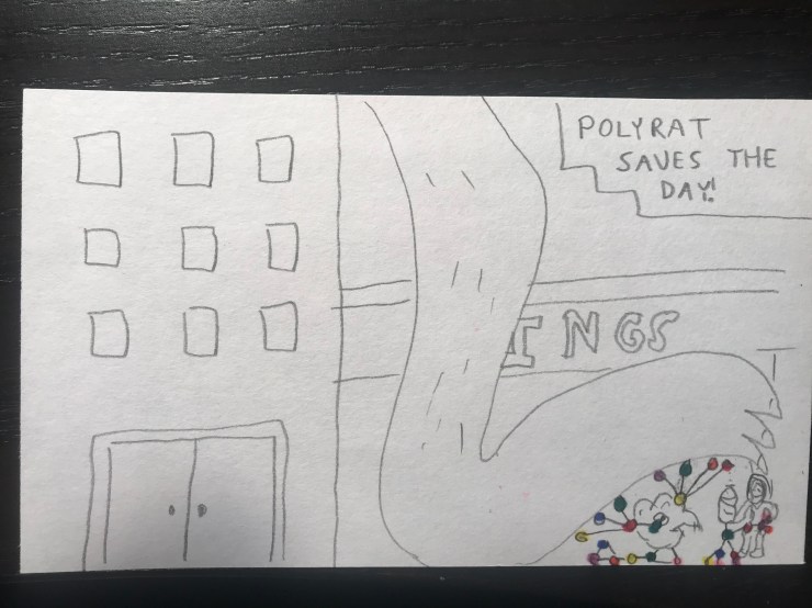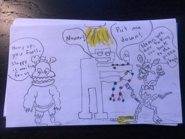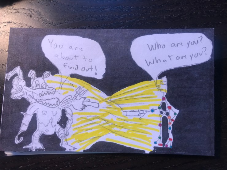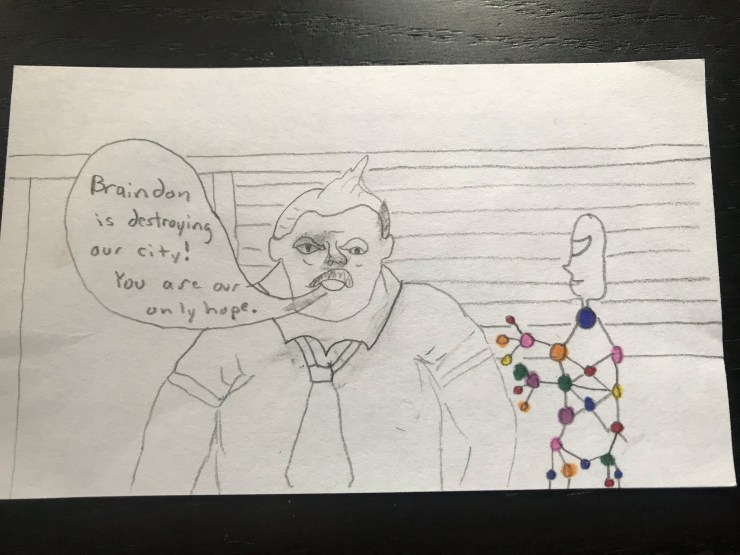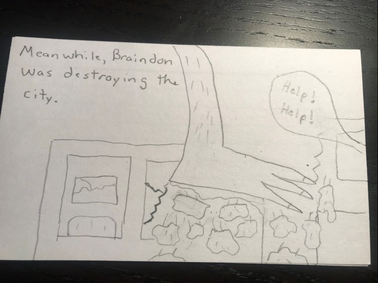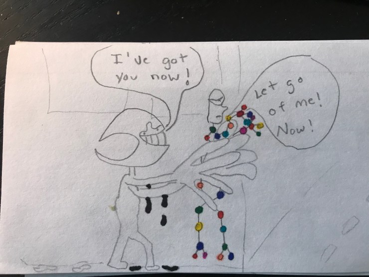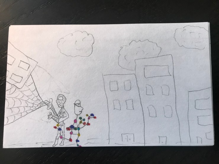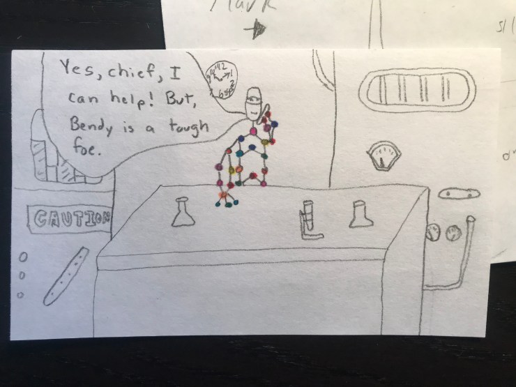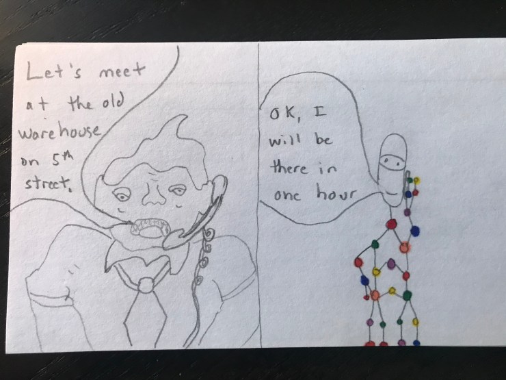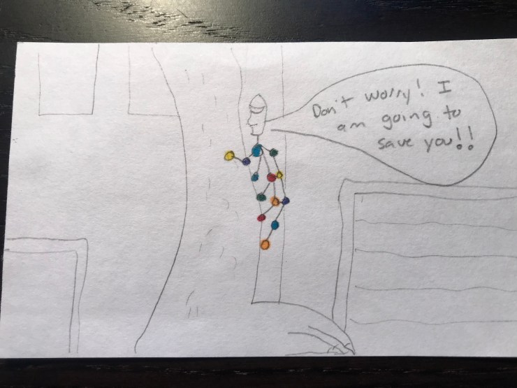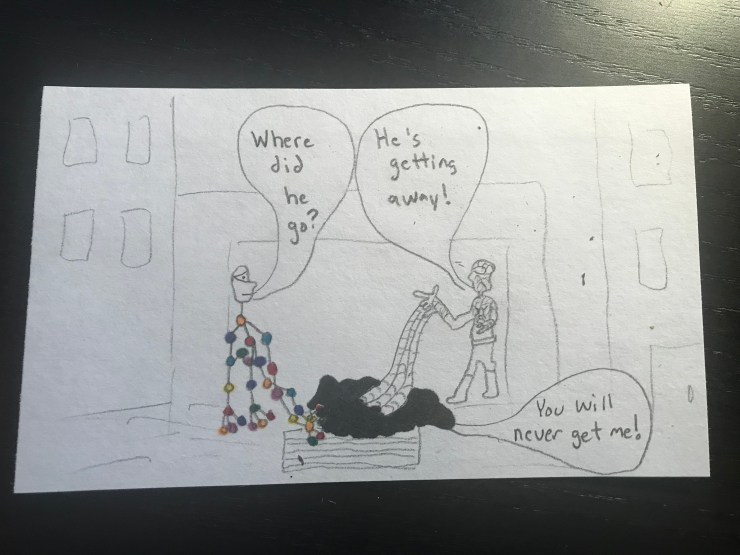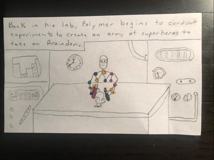 Will loves superhero comics and I want him to learn to love reading so this school year I am including a comic I draw for him in his lunch each day. I am going to post pictures of the comic here.